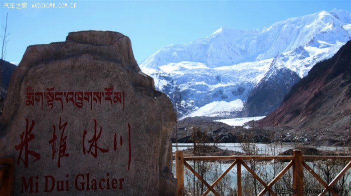 景区外遥望米堆冰川,从景区门口到停车的米堆村有7公里的极烂砂石路,千万不要因之而放弃,米堆冰川的魅力还在其中。