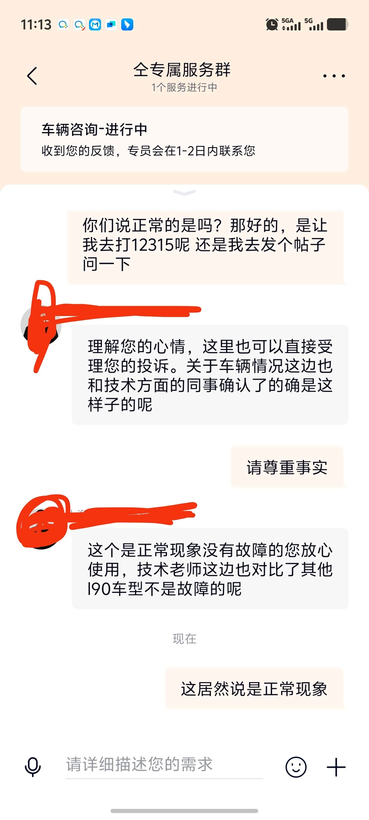 当即联系销售后,经过他们的检测,终于在昨天给予回复,说是对比了其他L90 车型,按照他们技术老师定义,这个属于正常现象没有故障,顿时火大!