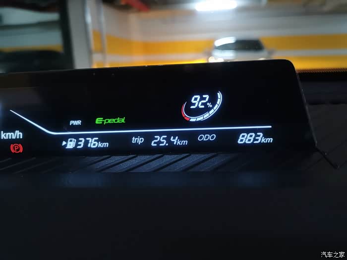 到了家里地库停好车之后我震惊了,我愕然发现剩余里程是376公里!