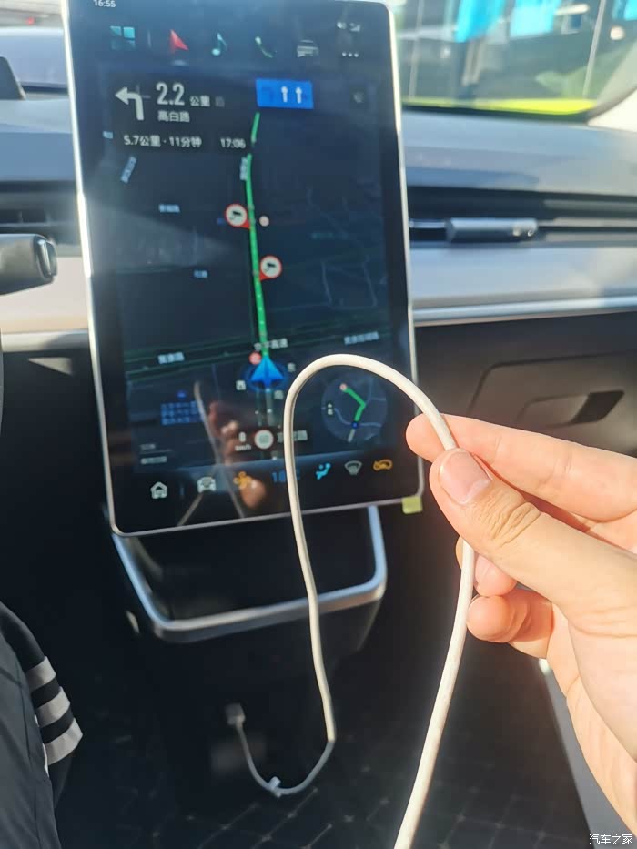 对了,有一点忘了说。为了测试一下极限,我还用数据线连接了汽车和手机,让汽车给手机充电。