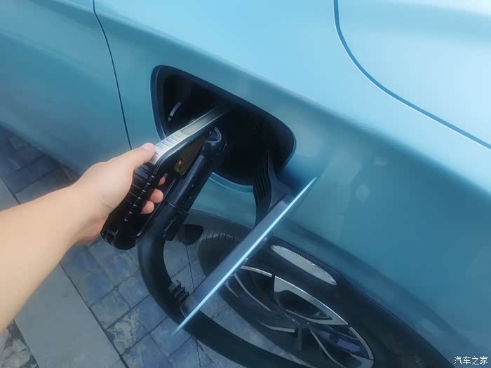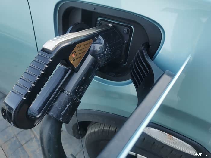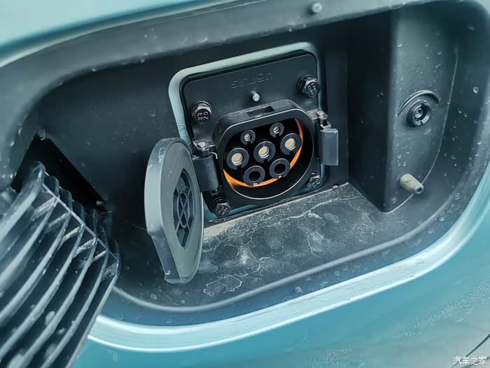这里说明一下,哪吒V有两个充电口,面向车头看过去左侧接口粗一点的是直流充电口,也就是快充接口。