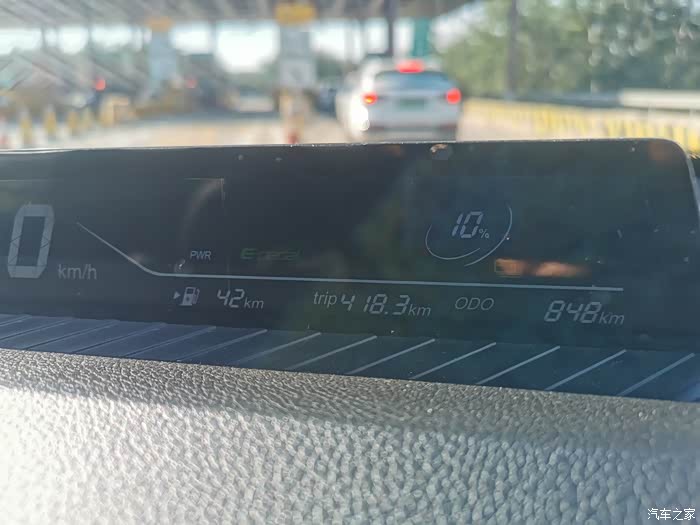 然后电量还剩10%,也就是还剩42km的时候,车子开始滴滴滴的叫了,这是剩余续航提醒。此前在电量低于20%和15%的时候已经两次滴滴滴的提醒过我了,焦虑感更加明显。
