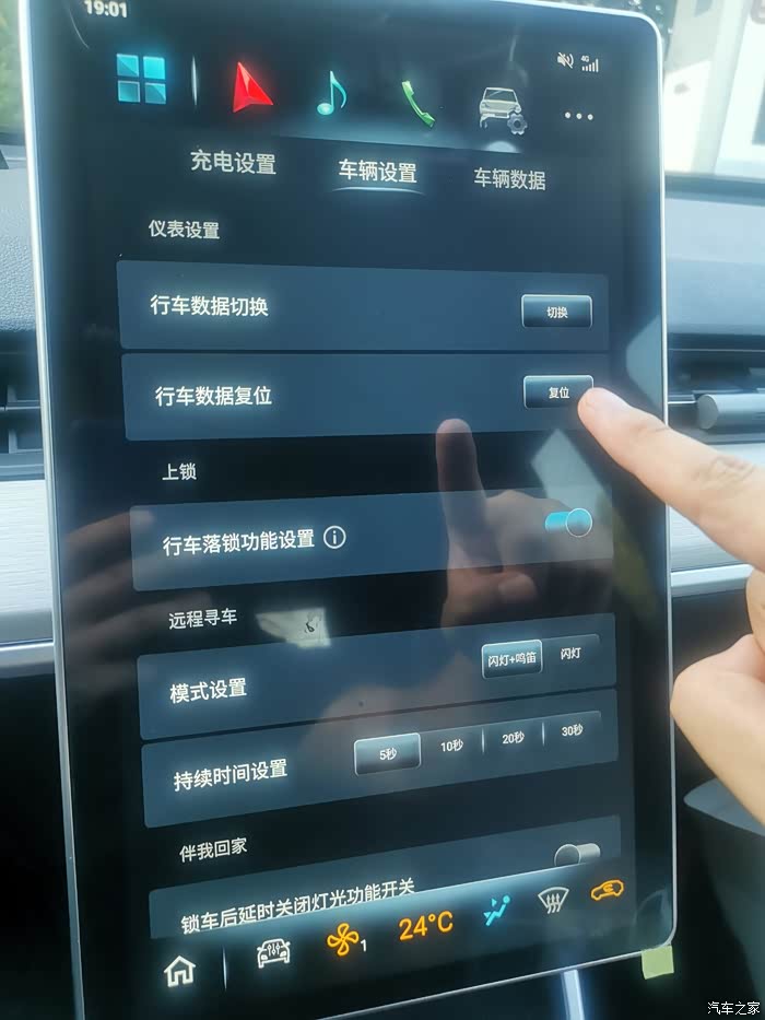 充满电后,我还想测试一下满电之后续航情况,于是我就把小计里程清零了,这个操作可以在车辆设置——仪表设置——行车数据复位——点击“复位”即可。这样小计里程就可以帮我统计这次充满电可以跑多远。