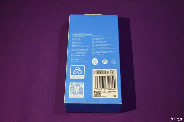 包装盒的背部是一些详细的配置参数,它还支持小爱同学呢,不得不说小米现在的产品都会加入小爱同学了。