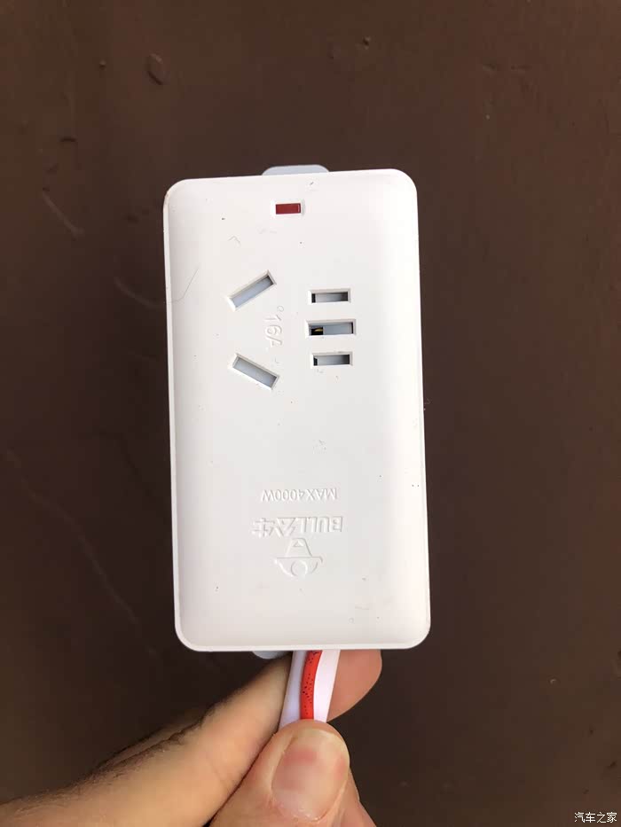 原车自带的2KW充电枪,家里的空调插座是4平方的线,功率足够。又买了15米4平方的线,接了一个16A的插线板,把电从家里扯出来冲的。