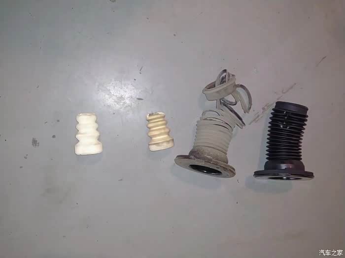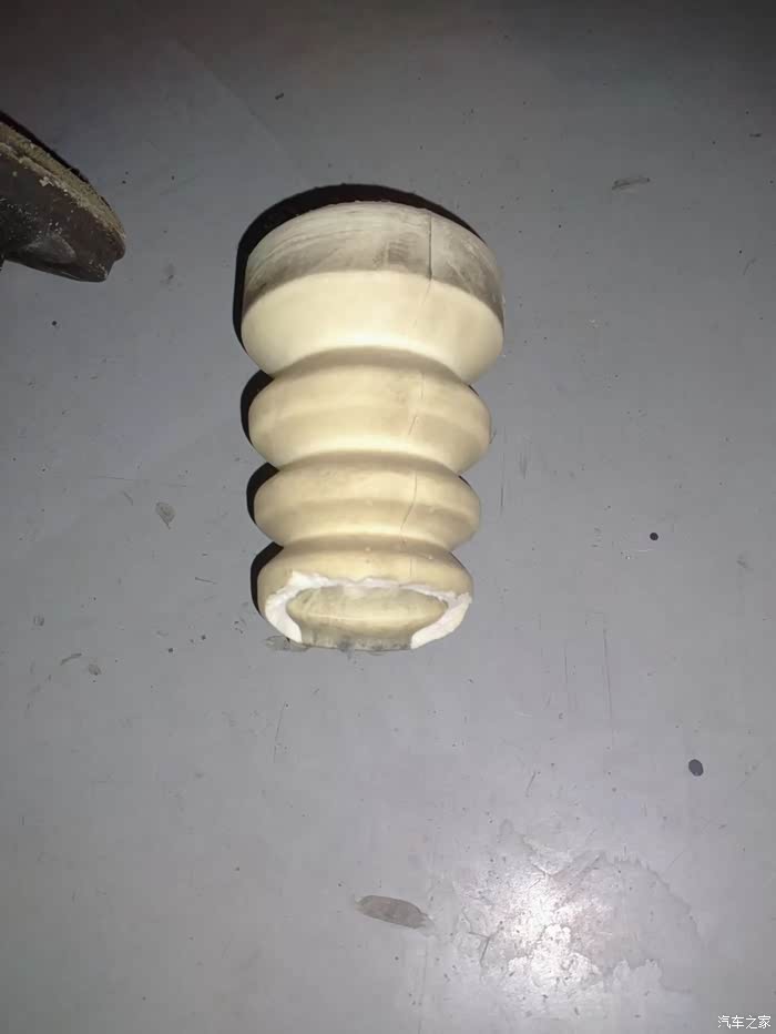 上面提到的缓冲器也出现了破损。缓冲器的作用顾名思义,采用缓冲原理,提升减震性能,还保护减震器和悬挂系统,避免减震芯的油封漏油。