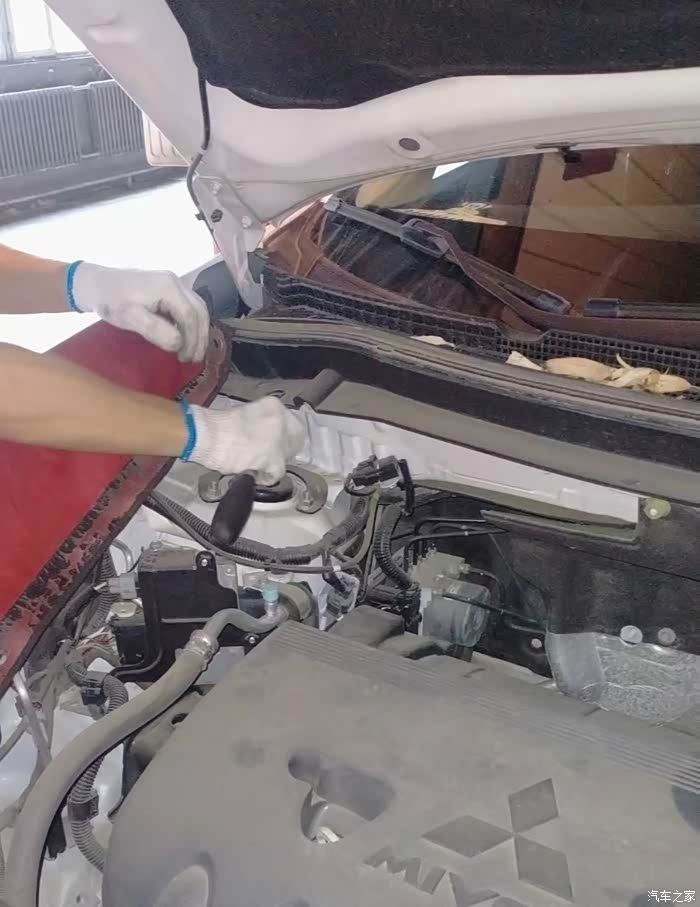 打开前机盖就能看见。一左一右,三个螺栓。以前不知道这三个是干嘛用的,现在知道了,固定减震器的。