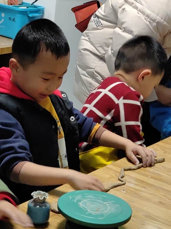为了避开拥挤的人潮,开车带孩子去做了一次陶艺。