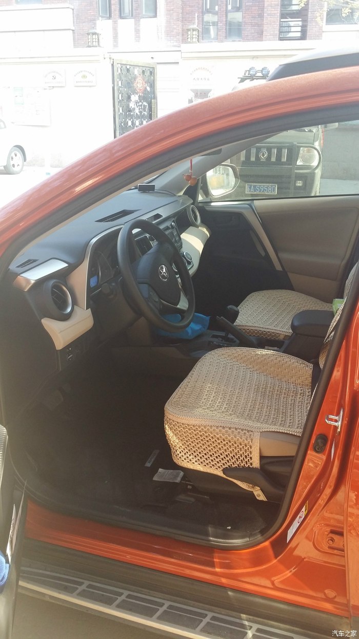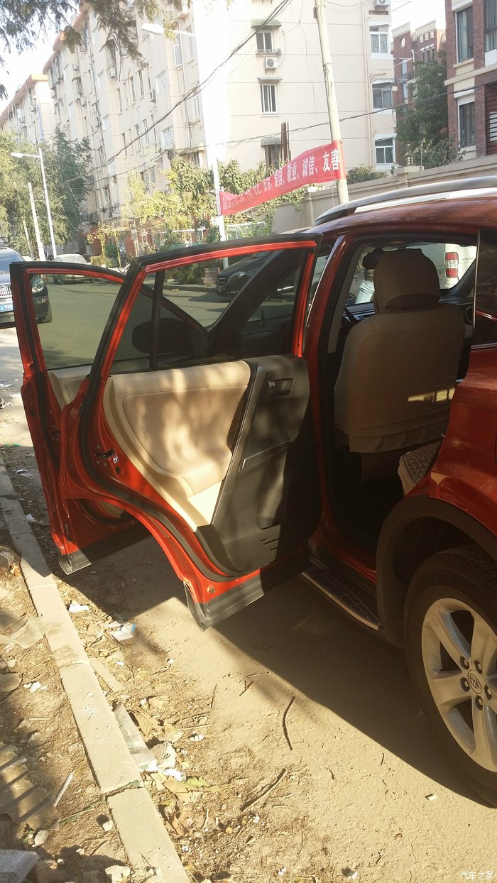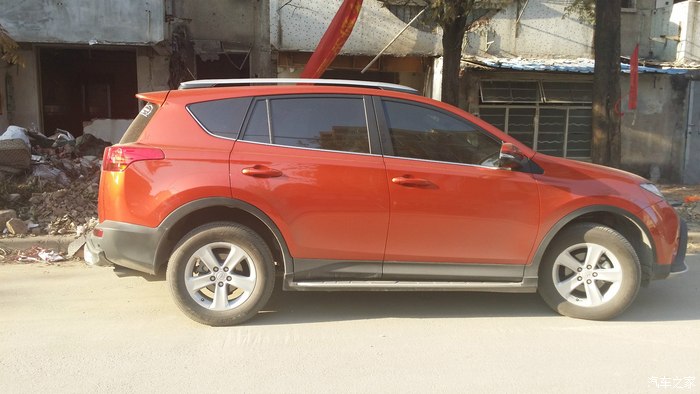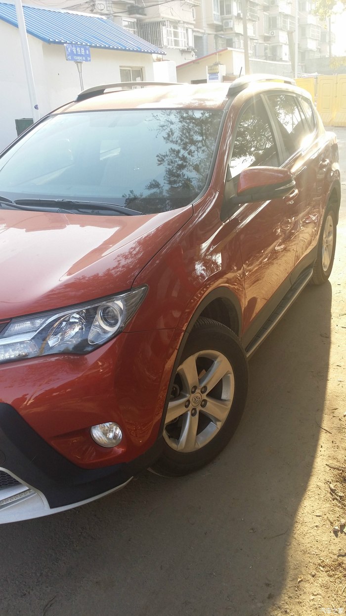 从决定要换车,家里就分成了2派,我主张经济型轿车,另外一边喜欢外观大气,视野开阔带点霸气的越野车。于是,上网找资料,4S实地看车,可谓一家人忙得不亦乐乎。也试驾了不少车型,什么斯柯达速派、本田的凌派、CX-5、别克的昂克拉和日产逍客也因为内部空间太小被淘汰了。当晃悠到丰田4S店,展厅里的RAV4一下子震住了我,因为展品就是橘红色,大概是先入为主吧,有点一见钟情的感觉呢!当即申请试驾,我和老公都很满意,立马交了定金。(老公都说这有点不像我的风格!):office: