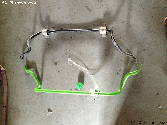 安装过程也不详细叙述了,反正就是各种敲,这是拆下的原车防倾杆和RPA防倾杆对比,原车的很细,照片上可能看不出,实际差别还是蛮大的