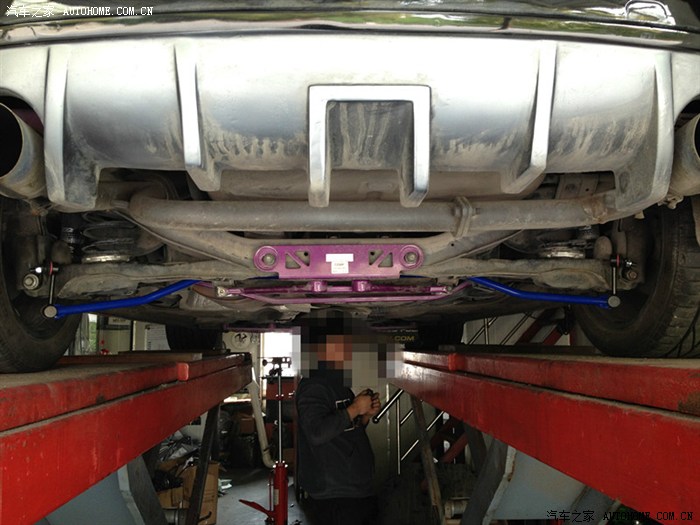 这是前后防倾杆都安装完毕的效果图,前面看不出,就看后面的吧,跟原车的防倾杆完全不同的安装方式