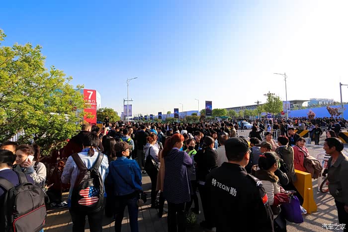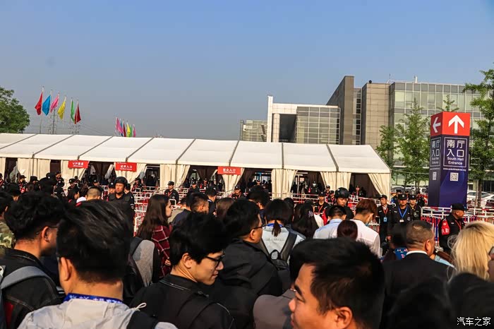 跟随大部队早早去往展馆,抵达入口却依旧排起了长龙,本来早起会略带一丝起床气,加上排队时的拥挤,不愉快的开始是我对北京车展的第一印象。其次就是出现拥挤的原因,媒体日的第一天,排队入场的入口很混乱,并没有把入口进行分类,媒体人员、工作人员、参展人员、保洁和礼仪小姐姐(这我不反对)都在一起排队入场,其实真按照分类通道入场,入场效率就会提高很多的。