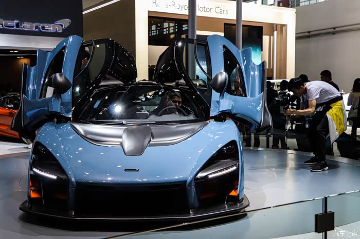 整车外观非常夸张,除了头灯造型之外很难去其他的迈凯伦车型找到相似的地方,大量的碳纤维材质的运用,以及夸张的空气动力学套件,在气场上绝对压过北京车展上的所有超跑们。