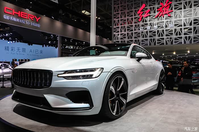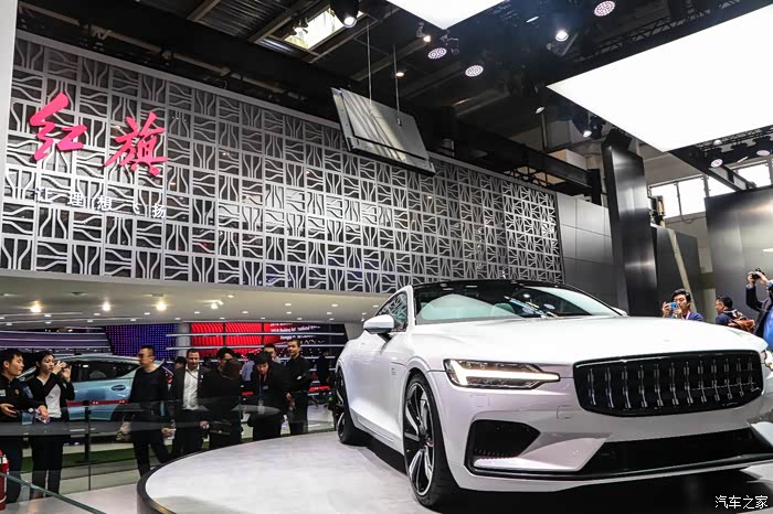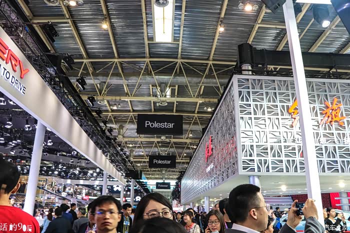 很有趣的一点,沃尔沃旗下高端运动品牌Polestar,由于和红旗的展位太接近,有点会误导观众这辆车是红旗的。于是很大气的承包了这个展馆中央的广告位!
