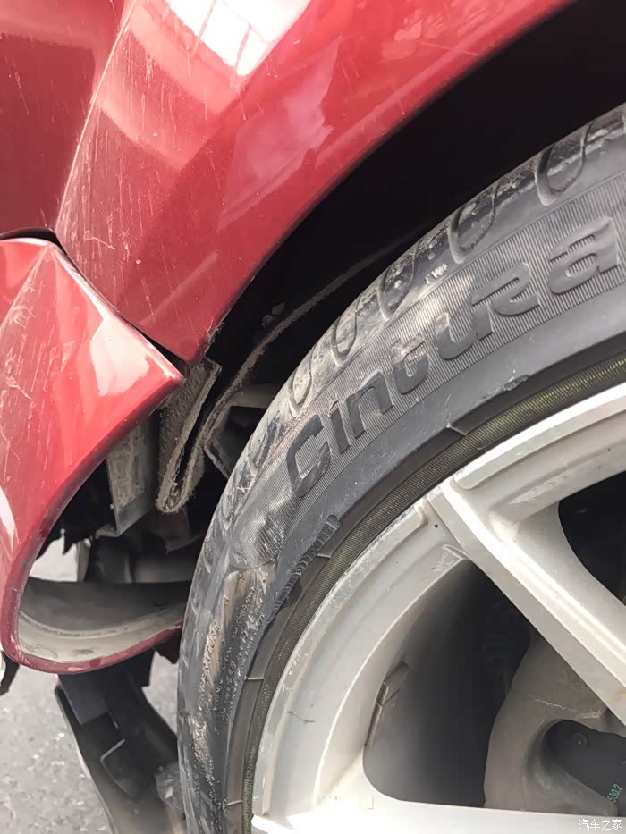 大家从照片中可以看到,后保险杠和后叶子板,轮毂轮胎都被撞坏了,