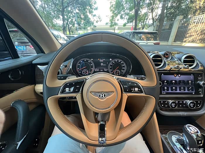 车子整体给人感觉还是很霸气的,前面大面积的镀铬中网,全车的真皮包裹,光面的真皮顶棚,以及到处可见的镀铬金属内饰件都很让人喜欢,唯一感觉有点差的就是车子内饰按键很多都是哑光塑料,而不是新款宾利那种钢琴黑的按键和面板,感觉豪华度上差了一些。车子还是很好开的,有点大,但是操控感和同平台的卡宴,q7差不多。动力上没得说,非常暴力,切换运动模式下,感觉就是卡宴turbo的水平,比之前的g63要猛,然后普通模式下,相比我现在手上的古思特的话,感觉宾利还是偏向运动,还是有些声浪,车子的悬挂和转向等都考虑到操控性。所以开是比较好开的,就是避震没有那么软,隔音也相对来说相比古思特差一点。总体来说我觉得相比bba的d级车,宾利整体档次提升明显,和劳斯莱斯感觉有点点差距,但是不大,然后品牌定位取向不一样,宾利偏向运动,劳斯偏向舒适。我觉得在我家当时买添越的那个价格段,添越算是非常不错的选择。