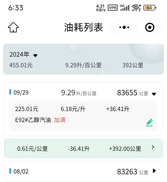 我才买了一台16年的二手A600 跑了第一箱油 表显8.5 实际用小熊油耗算的是9.29 这车油耗真是吓人, 总共10格油 掉了八格 跑了396公里