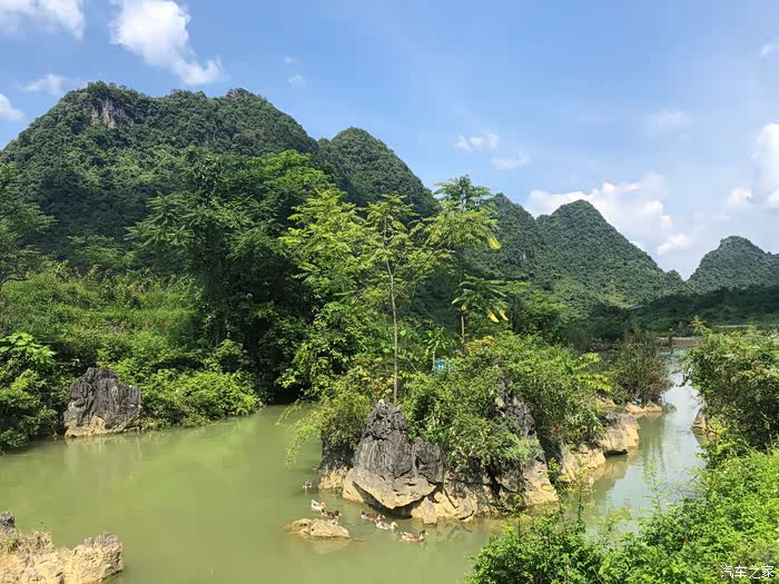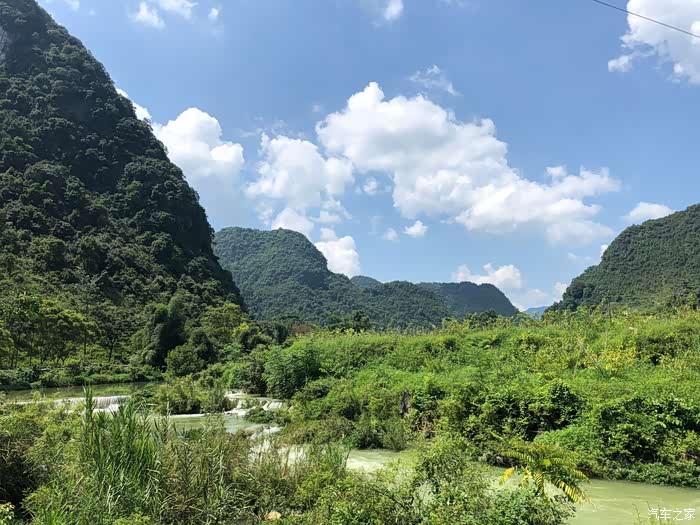从德天瀑布出来,到镇上吃了个午饭,然后就往下一站靖西出发。德天到靖西的这一路山山水水,真的是赏心悦目,非常漂亮。沿途到处是蓝天白云,山清水秀的自然景观。