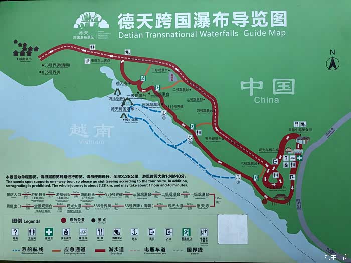 在凭祥我们没有逗留多久,随后继续沿边公路,在晚上8点多到达德天跨国瀑布景区门口。德天瀑布的游客服务中心现在迁至离景区大门10公里处的地方,强制乘坐景区摆渡大巴,10公里公交车收费45元,我滴天呐,全国最贵的公交车了。