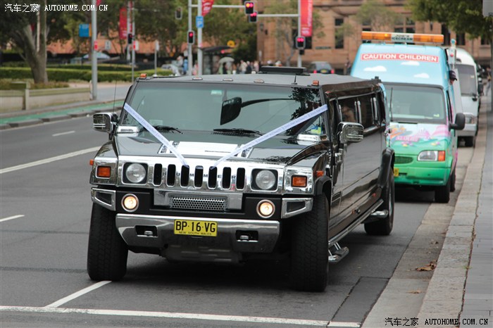 ↑加长悍马,婚车。人那结婚都是车头前面两根白丝带,表示纯洁好像是...