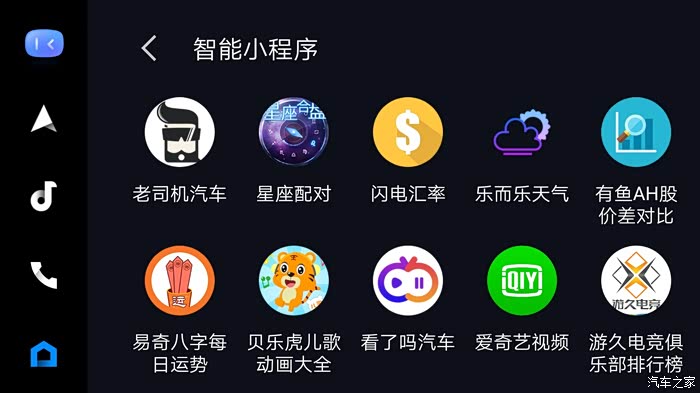 最新版的里面有个小程序可以看手机里有的爱奇艺优酷,但是只能停车看,开车不行