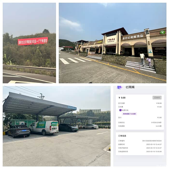 三是在广色第一次充电,吃午餐,贺州服务区再补电(蔚来充电桩,扫码预约试驾可以免费冲1次电),随后可以一口气开到桂林;
