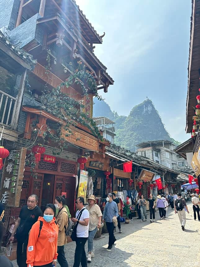 今天开车再从桂林出发去阳朔,游玩项目是遇龙河漂流和观看演出千古情,中午在西街网红店吃饭,晚上回酒店外卖桂林米粉。