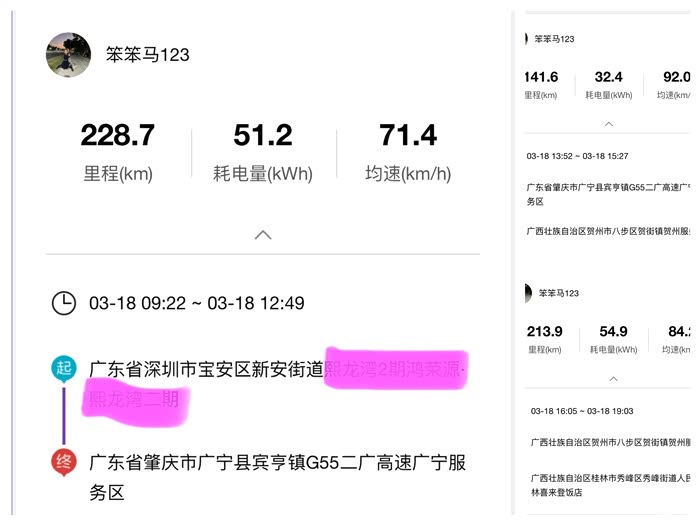 四是最后一天早上10时40分从桂林酒店出发,晚上20时30分钟到宝安家中,全程用了10小时左右,包括堵车60分钟,两次充电80分钟二是真实用车跑了618公里,开车时间8小时9分钟;