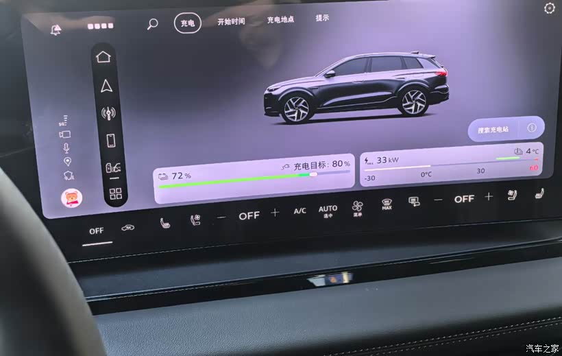 充电也很方便,全域800V的充电,快充支持270KW的桩,如果在快充充电,基本上20分钟充完,基本上就是5%-80%,家门口商场就有奥迪的充电桩,可以在一汽奥迪APP上预约,很方便。