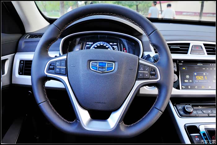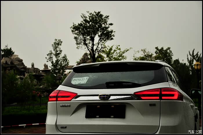 一边是荷叶田田,一边是绿树成荫,我的博越就在这如画的景致中隆重登场。 水波涟漪的中网,锐利的LED鹰眼大灯,我更愿意称之为蝎子尾的如意雾灯。厚重的造型,都从正面扑面而来。 LED灯带式日间行车灯,带来的不仅仅是美观和精神,还有妥妥的安全,据说超过六十公里即便你关闭了日间行车灯也会自动开启