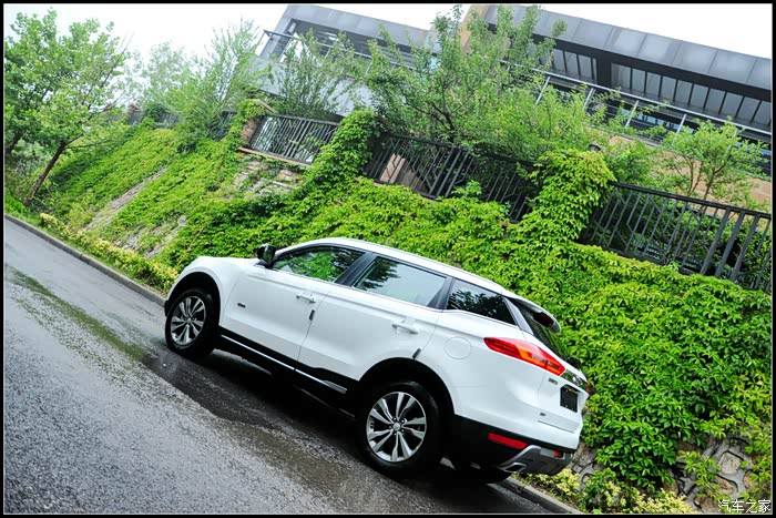 如果低角度看,博越后面会显得有些高。至于排气管,能看到,真的能看到,但是绝对不会觉得低。多高?看着就挺高的,我就懒得量了。