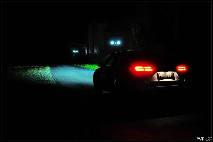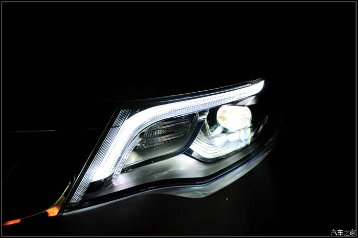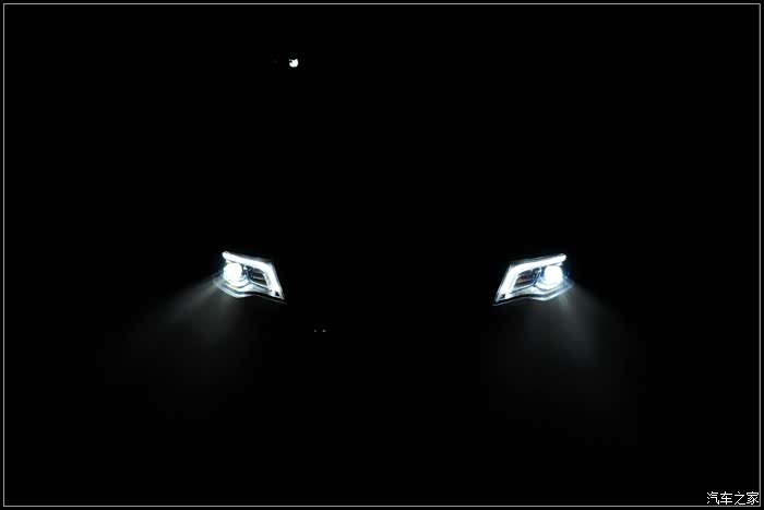 全LED前照大灯,近光灯开启,锐利的光线在夜色中劈出一扇雪亮的光幕。。。