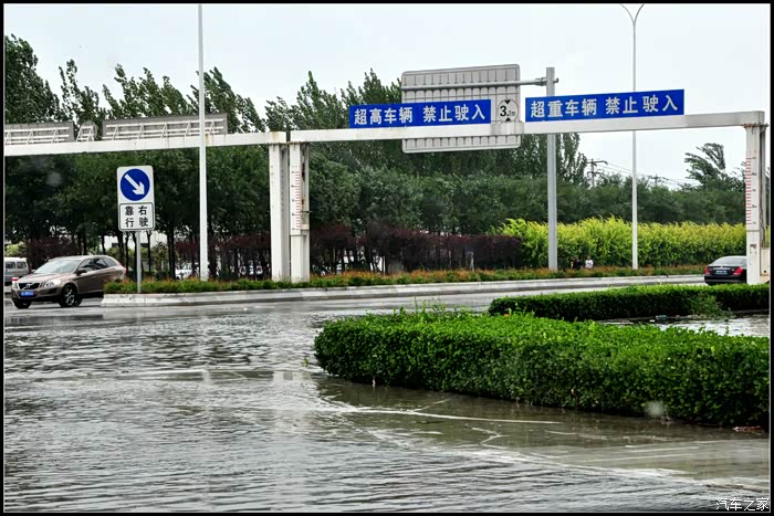 车管所附近已经是一片***,深度快要到达膝盖,可是这又是到达外检的必经之路。其实我挺犹豫的,如此的水深,我这连正式牌照加保险都没有的新车,如果牺牲在半路,那可真是要损失惨重了。最后看到有CRV甚至轿车冲了过来,也就狠狠心,稳住油门冲了过去。。有惊无险,安全通过。