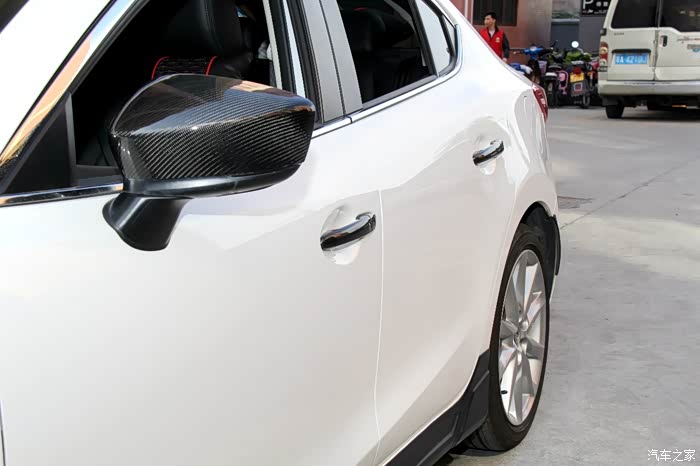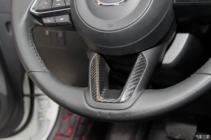 。最喜欢的就是碳纤维部件,没丢过一件,碳纤维车牌架上牌前已经准备好了,上牌时装的,还有镜壳之类的,最新入手的是方向盘和排档贴的碳纤维,超级不错,还有马自达专用的碳纤维拉手,很轻很薄的,装上了黑白配,很搭,很喜欢。个人不喜欢一些晒碳纤维的假碳纤维,要上就上真的,我全上真碳纤,晚点贴纸也会撕掉了