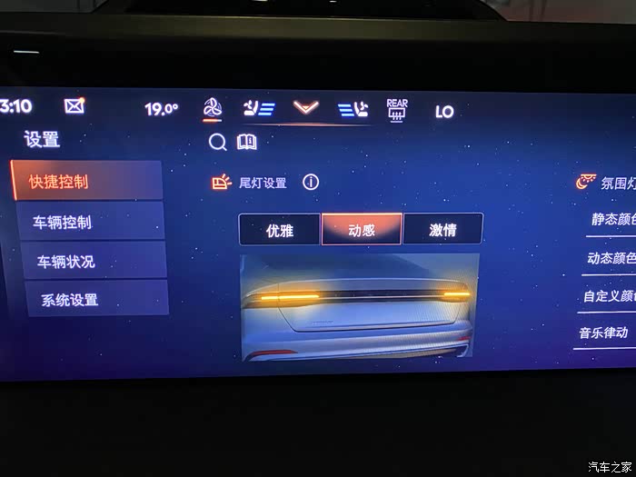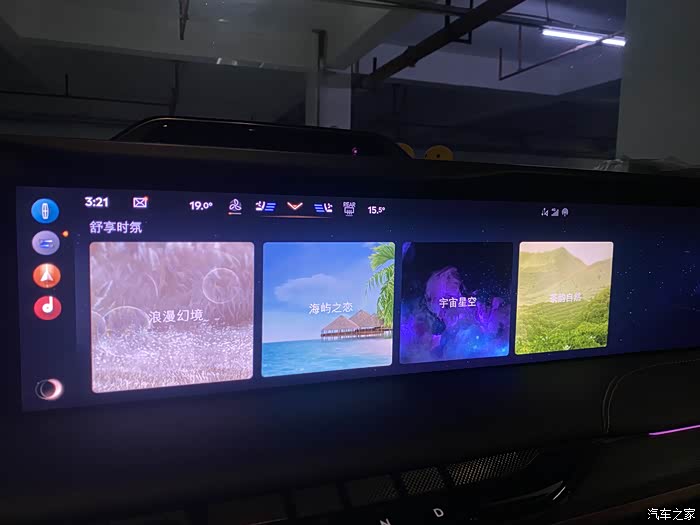 四个主题可以选择,我选了最喜欢的紫色,氛围灯接着就会跟着换颜色,接着是座椅会自己调到最舒适的平躺姿势,开启按摩和香氛功能,车机这个时候也会放几首轻音乐,简直不要太赞,每次下班回来都会在停车场给自己来这么十几分钟,躺平直接享受就完事了,只是储物箱差几瓶饮料,不然就更完美了。