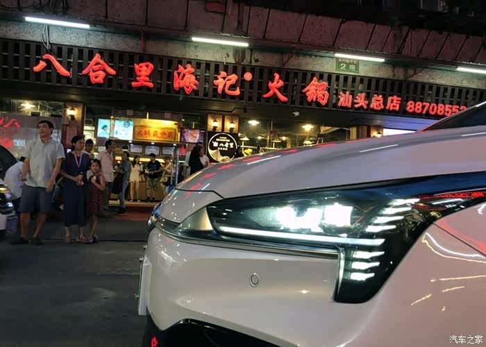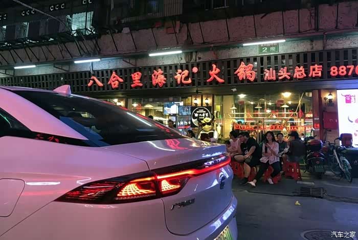 晚上七点半,我们到达汕头八合里海记火锅汕头总店,此时里程表显示1719KM,剩余巡航里程171KM。