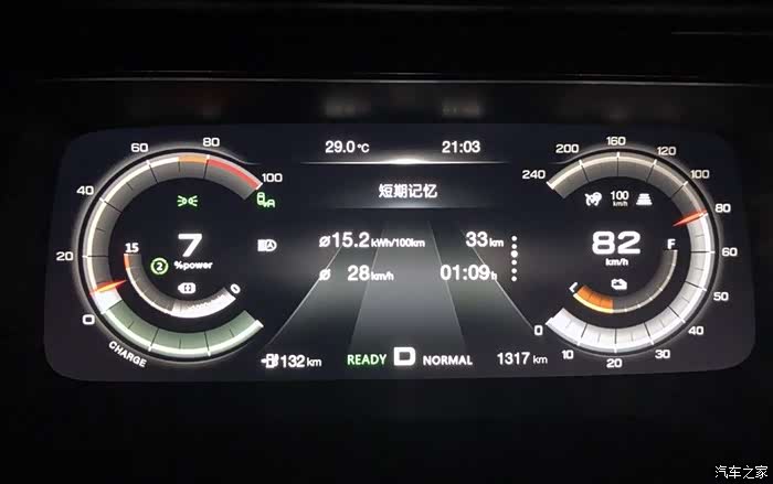 从里程表上可以看到,33公里走了1小时9分钟,拥堵之严重可见一斑。不过,令我们感到意外的是,在拥堵状态下,车辆的电耗并不高,只有15.2kWh/100km,而这也离不开Aion S首创的三合一电机电控差速器系统,能够有效的降低电耗。