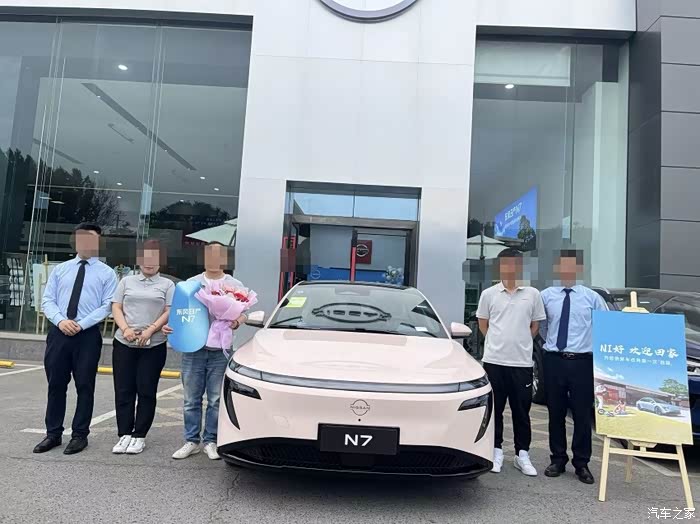 作为日产三款车的老车主,14年的轩逸,目前17款奇骏,21款轩逸十四代,目前我在开奇骏和,媳妇开轩逸14代。作为传统油车的忠实拥护者,其实刚开始对新能源车不太感冒,甚至有强烈抵触心理,但这两年心态也在不知不觉期间发生着改变,作为日产老客户,对其一直非常认可,好开舒适还质量可靠,因此还是想选一辆日产新能源车,但对e-power不感冒。这次N7价格发布前一直关注了很久,非常喜欢,特别是外观,完全在我的审美点上,但之前听说价格会在15~20万,超出预算,就没参与盲订,发布会给了个大惊喜,第二天就带着媳妇去店里试驾了,当天就下定了。苦等一个月,终于拿到车了,专营店还是服务很到位,专门建了为我服务的微信群,提车也很快,只是交车区在改造,只能在门口简单举行了交车仪式,略有遗憾。一周用车下来,总体感受保留了日产车舒服好开的传统,上手很容易,外观更是走到那里都是一道靓丽风景线,备受瞩目。座椅确实是一大亮点,朋友同事体验后都非常认可。缺点就是有点大,新手司机最好选高配的,辅助到位,更加安全。还有一点就是关于车门在等红绿灯时候会被误开的问题,通过对智能场景研究应用给予了完美解决,下次找时间单独分享一篇。续航问题,刚提车静态研究多,提车后跑了300公里,还剩25%的电量,然后自己充了电,目前还不错,后面再跑跑再分享交流。总体还是非常满意的,值得推荐。