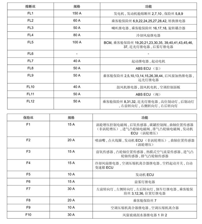 这上面都是发动机仓保险丝盒的具体说明,BCM盒的说明见沙发。
