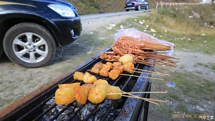 沿路的烤羊肉串、牛肉串、洋玉串味道巴适。