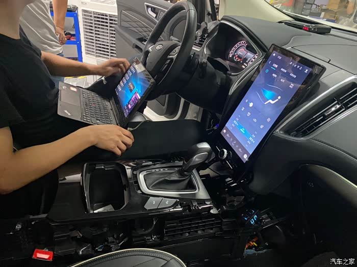 这个图就是给那些只换大屏,不换旋钮换挡的车友看的。。。外观效果还可以,没有太大的违和感。