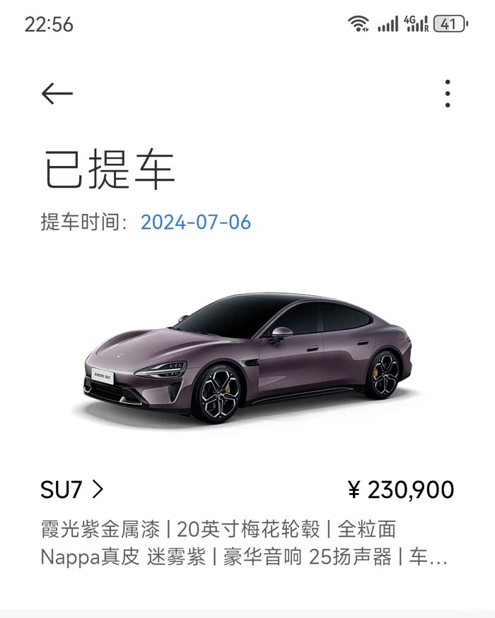 【出】小米SU7标准版,紫外紫内,20寸梅花轮毂,5160公里