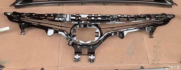老款换新款的话,需要保留这个格栅,移植到新款的前杠上,因为新款遇碰雷达支架变了,牛头标卡扣位置变了