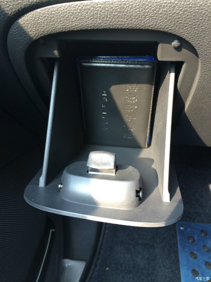 主驾驶左下面的小储物格,刚好放驾驶证、行驶证,3分走你!