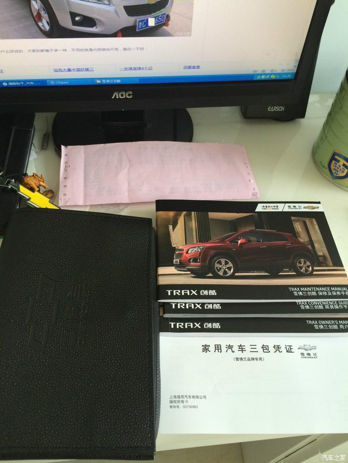 雪佛兰创酷的用户手册、简易操作手册、保修及保养手册,三包凭证,还有精美书包