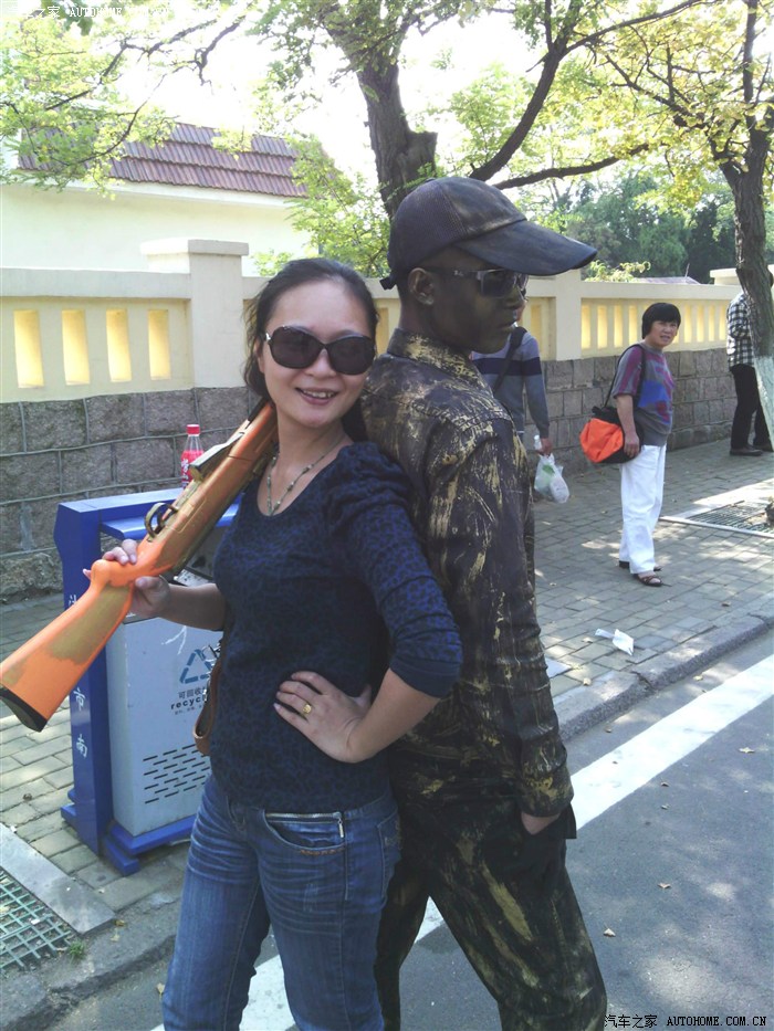妹纸跟街头行为艺术的合影拍了几张,拍完后哥们跟开始要钱了,10块不够,至少20块,不给不让走,扫兴