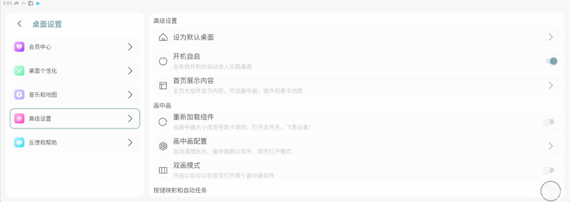 乐酷桌面支持画中画,能很好的支持高德导航,具体设置可以在app中查看帮助。不要把乐酷桌面调成默认桌面,只需要设置成开机启动就行了。调成默认桌面后,原车有些功能无法开机启动,影响驾驶。我们这个车的几个关键设置如下: