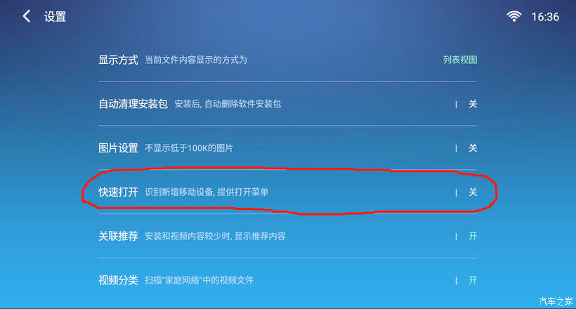 2,安装小白文件管理器:同样用悟空遥控器的投送功能安装小白文件管理器,安装好后,点更多,再点设置,把快速打开关闭。。