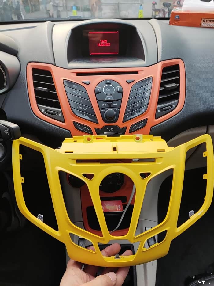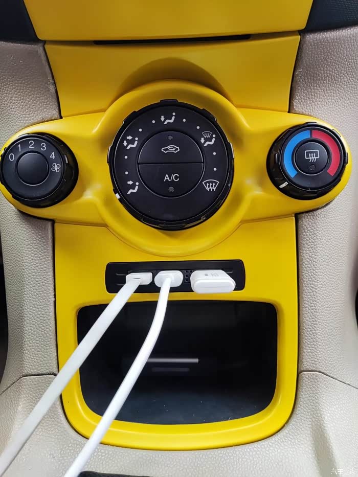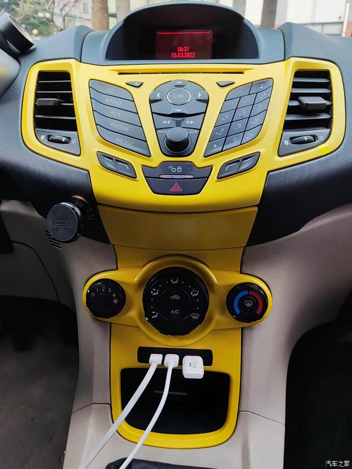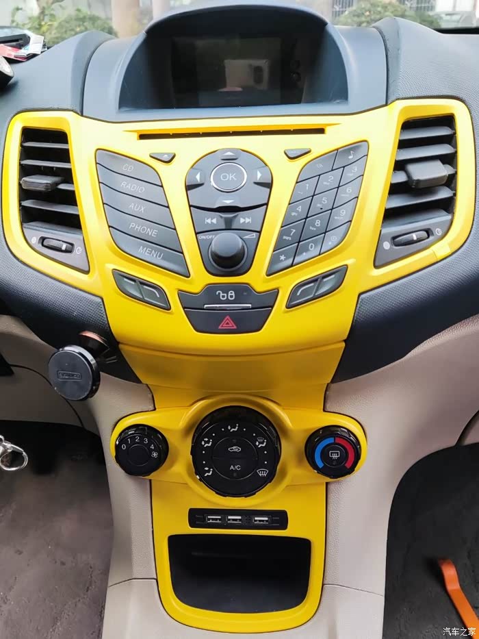 近乎完美 福特嘉年华卡片口改USB充电口,更换黄色中控面板