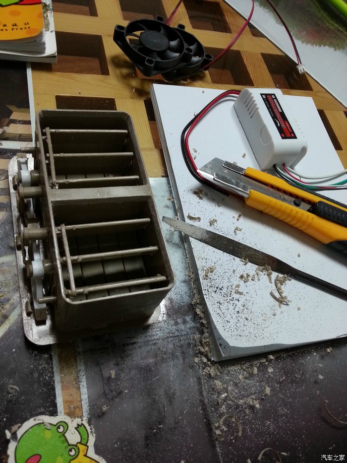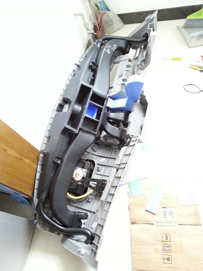 到这里为止,又崩溃了一次,装车试机,发现接上波纹管之后,风机几乎不起效果,严重高估了电脑风扇的风力,低估了波纹管的风阻。都拆成这样了,怎么能打退堂鼓呢?就这样放弃也对不起我设计的这么帅的控制电路啊